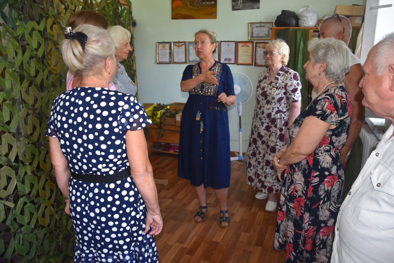 Целью визита было совместное с представителем командования Черноморского флота вручение благодарностей всем мастерам и мастерицам, занимающимся изготовлением защитных сетей для военнослужащих.