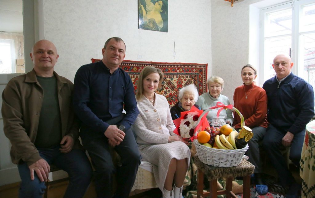 Именинницу пришли поздравить: председатель Бахчисарайского городского совета Ольга Кулинченко вместе с заместителем Андреем Капустиным, заместитель главы администрации города Бахчисарая Арсен Аблаев, директор МАУ «Институт развития Бахчисарая» Андрей Грузинов и специалист Центра социального обслуживания Бахчисарайского района Анжелика Деева.