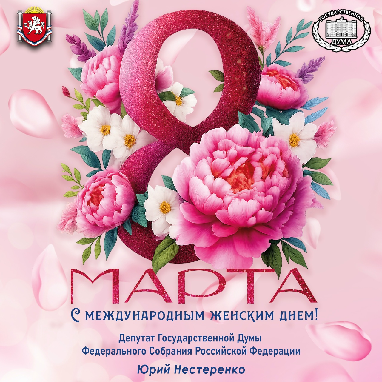 Повсеместно сегодня звучат слова благодарности и восхищения в ваш адрес. Мы спешим окружить заботой матерей и бабушек, порадовать любимых жён, сестёр и дочерей. Хочется остановить бег времени, вырваться из череды повседневных забот, чтобы просто обнять вас, сказать самое важное, передать теплые слова тем, кто находится далеко, но неизменно верит и ждёт.