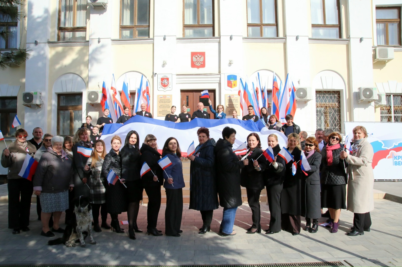 Накануне Дня воссоединения Крыма с Россией у здания городской администрации Бахчисарая состоялась торжественная патриотическая акция «Флаг единства». Мероприятие, приуроченное к 12-й годовщине возвращения полуострова в родную гавань и проходящее в рамках Года единства народов России, посетили руководители администрации, городского совета, сотрудники госучреждений и жители Бахчисарая.
