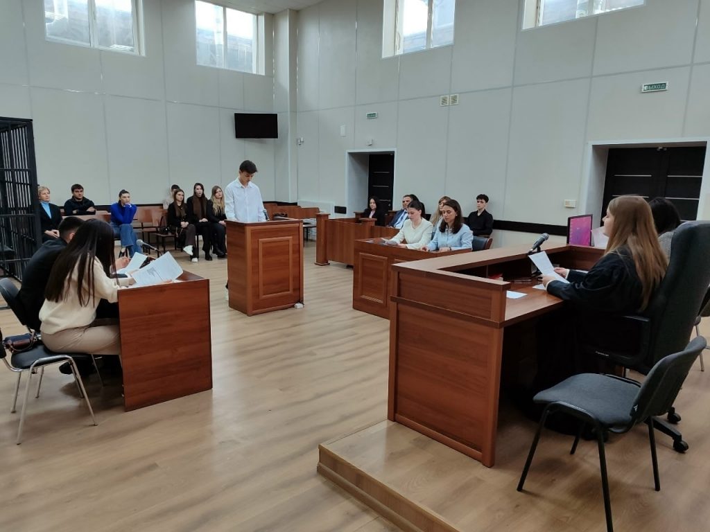 Студенты в зале судебного заседания смоделировали судебный процесс по гражданскому делу, распределив между собой роли судьи, прокурора, представителя ответчика, свидетелей и, демонстрируя полученные в ходе обучения знания гражданского права и процесса, разобрали обстоятельства дела.
