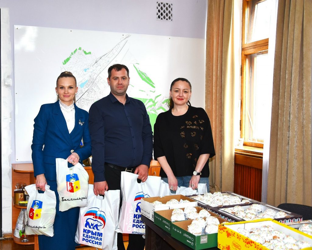 В благотворительной акции приняли участие: председатель Бахчисарайского городского совета Ольга Кулинченко; представитель Бахчисарайского филиала ГУП РК «Вода Крыма» Даниил Захарьин; специалист по социальной работе ГБУ РК «Бахчисарайский районный центр социальных служб семьи, детей и молодёжи» Елена Вишневская, а также активные жители нашего города, оказавшие помощь в формировании продуктовых наборов и пасхальных угощений — Оксана Королькова, Ирина Супрунова, Алёна Булавка.